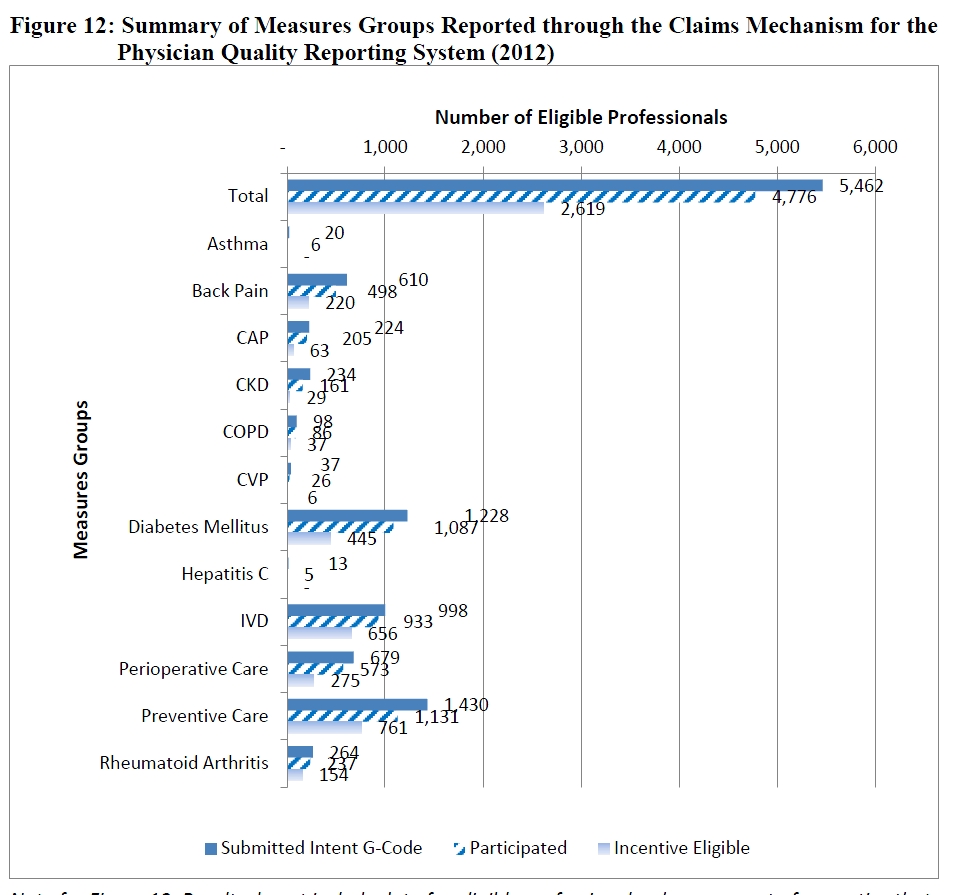 See Figure 12 below from 2012 Reporting Experience Including Trends (2007-2013) Physician Quality Reporting System - March 14, 2014)